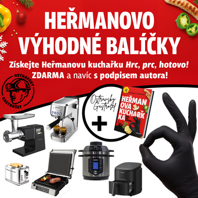 Ke každému balíčku získáte kuchařku Hrc, prc, hotovo! zcela ZDARMA, navíc s vlastnoručním podpisem Heřmana.
