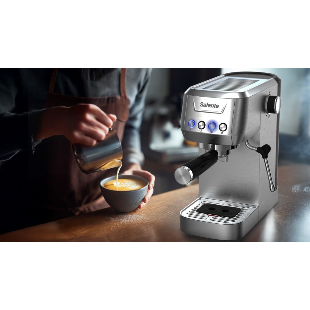 Tento stylový pákový kávovar vás okouzlí nejen výbornou kávou a stylovým designem inspirovaným italskou elegancí, ale také komfortním ovládáním. To mají na starosti nízkozdvižná tlačítka s prodlouženou životností a modrým podsvícením.