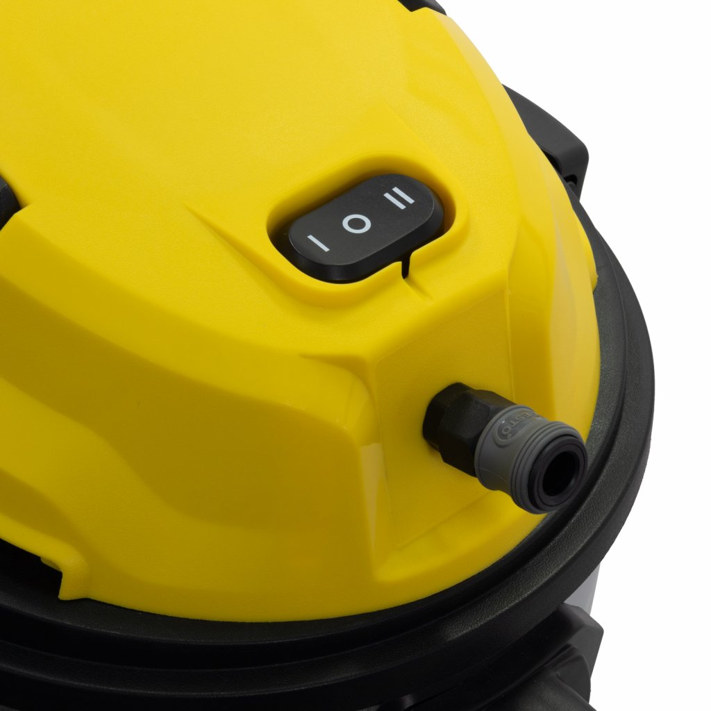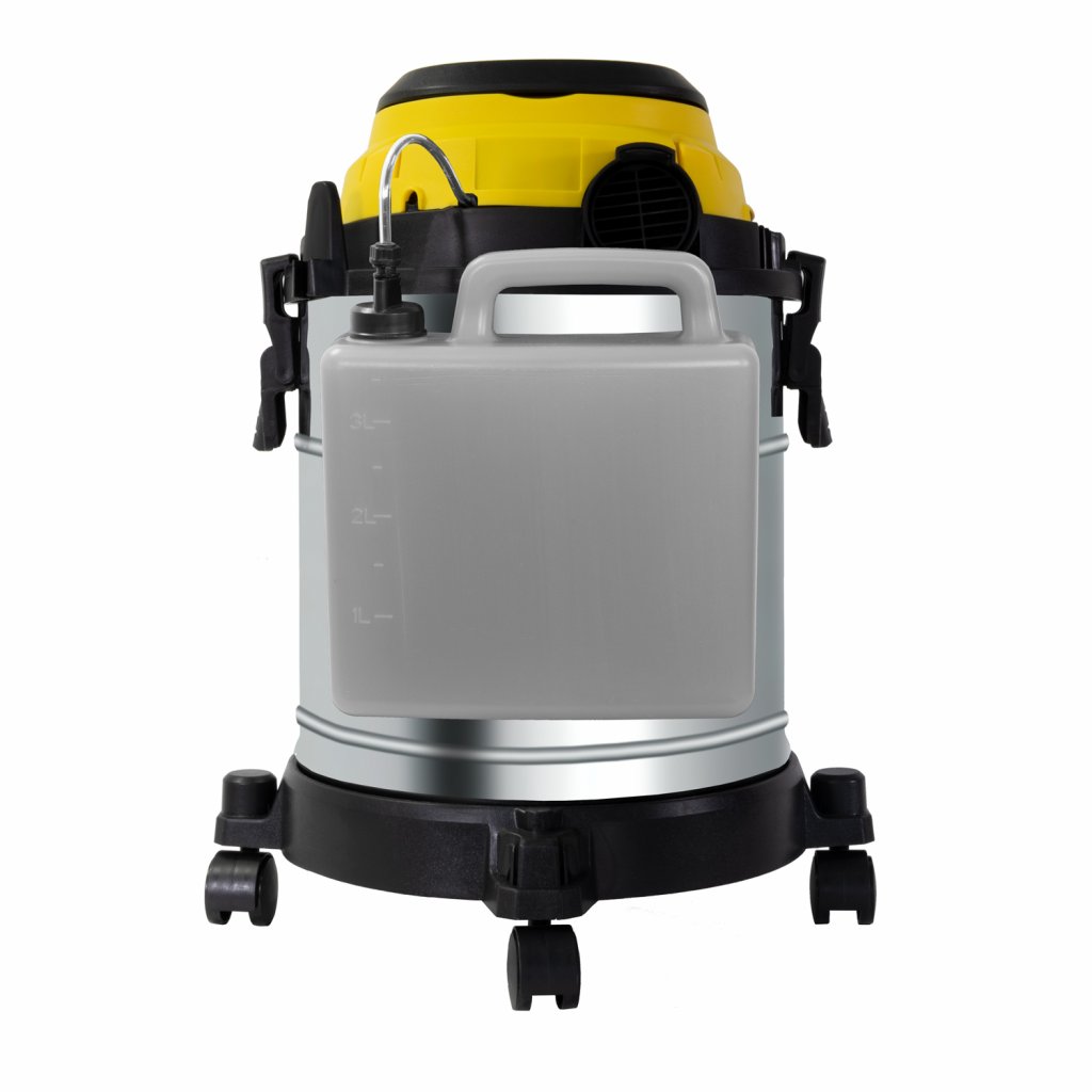 Vysavač disponuje vysokým sacím výkonem, díky kterému vysajete všechny nečistoty ve vaší domácnosti nebo dílně. Nečistoty lze vysávat přímo do nádoby o objemu 20 litrů nebo do papírového sáčku. Můžete tak tedy vysávat se sáčkem i bez něj. Vysavač využít i pro mokré vysávání. Lze s ním tedy vysávat mokré nečistoty, kapaliny nebo například akvárium. Ve vysavači je bezpečnostní systém, který zabrání poškození vysavače kapalinou a upozorní vás na nutnost vyprázdnění nádoby. Z vysavače lze také snadným přepojením hadice získat výkonný fukar na listí nebo nečistoty.