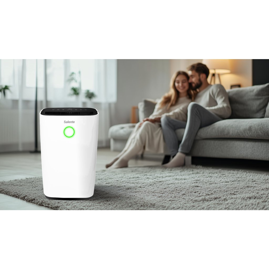 Salente WaterStar20 je skutečným hrdinou v boji s vlhkostí. Tento moderní odvlhčovač můžete využít v jakékoliv místnosti do velikosti 100 m² – efektivně si poradí s problémy, jako jsou plísně, zatuchlý vzduch, orosená okna nebo nadměrná vlhkost způsobená přetápěním.
